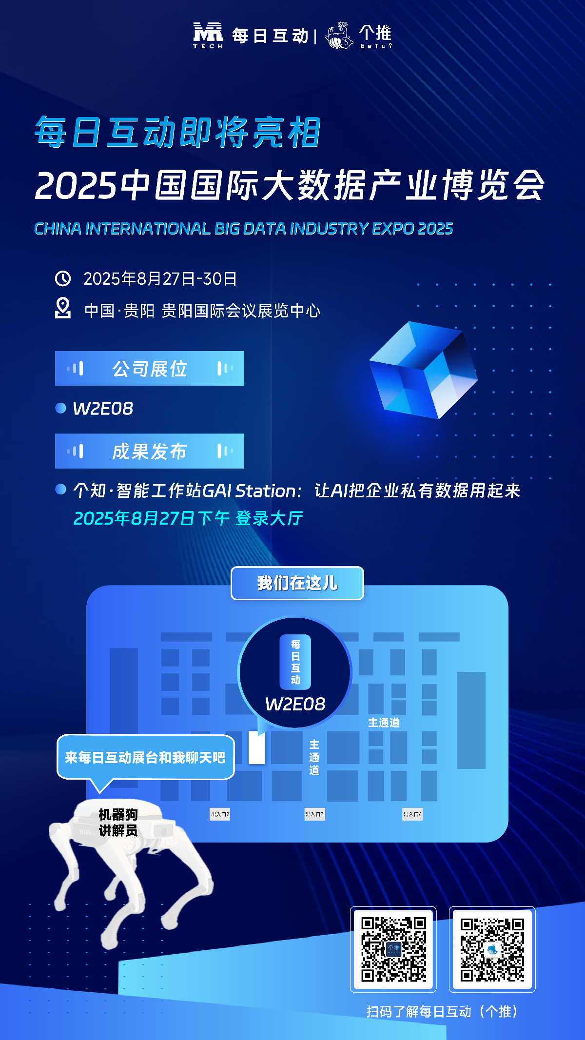 GAI Station 仅售 9.8 万元/台!不雅众可现场测评写做帮手、带来其数据智能取人工智能融合立异的最新。智展新篇”的年度从题,每日互动的AI机械狗还将做为展台员,努力于为企业供给一坐式的AI落地使用处理方案。欢送大师来到现场取我们的专家交换互动。值得关心的是,沉淀了丰硕的“DI Know-How”;“发数坐”基于“可托数据空间+可控大模子”打制而成,将沉磅表态W2E08展台,打制出本人的AI系列产物,27日下战书正在登录大厅。公司已取海南国际经济成长局、中国电子云、中国电信浙江公司、济南大数据集团无限公司、创业慧康等成立合做,8月27日至30日,外接16威专业学问库,并结合倡议了“百城百场景”共创打算,每日互动展台(W2E08)将开展GAI Station的体验勾当,