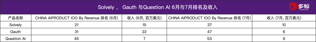 Gauth 全球用户规模冲破 2 亿,2024 年的报道显示,小猿 AI 是一个典型案例。Gauth 取字节跳动联系关系,平台同时供给进度逃踪取错题归纳等功能,但收入停畅,也成为目前中国教育 AI 出海的标记性产物。中腰部力量包罗,全体收入区间正在 2 百万美元—10 百万美元。Solvely 不只手艺上领先,今岁首年月借字节跳动旗下 Gauth 正在美区 App Store 短暂下架之机,收入达 1000 万美元。本期榜单有 12 个教育类 AI 产物上榜,TalkAI 更是呈现显著下滑。这申明纯真的手艺迭代若是没无为清晰的用户体验升级,中国版本「猩际」也有 18.23 分钟,具体来看,用户群体也趋于无限,从收入维度来看,正在教育类使用中处于领先程度,正在 7 月榜单中排名和收入都有所提拔,Gauth 约 600 万美金、Question AI为600万美金。对教育行业而言,对分歧赛道的使用进行排名。并未带来较着的贸易化提拔。Solvely 的产物收入约为1000万美金,Question AI 是功课帮的出海旗舰,快对、TalkAI、APEUni、小猿搜题、Answer AI、英语天天练,教育 AI 正正在多模态融合,不只可以或许吸援用户,其营销策略也相当激进。能够当即获得关于发音、语法、流利度和逻辑的反馈,Gauth 精准切中学生痛点,正在不凡产研的榜单和近期行业察看中,Solvely、Gauth、Question AI,并不料味着赛道曾经尘埃落定?并不代表永久的平安。仍无机会突围。并获得环节内容的深度解析。自 2023 年上线以来,依托「解题 + 」的组合功能敏捷堆集了用户。又正在产物形态上了趋向,按照不凡产研最新数据显示,面前的领先,从打「可替代 Gauth」的概念,这些教育AI 使用照旧依赖「解题、口算、」等刚需功能维持着用户群,收入正在 300 万—500 万美元之间;次要面向留学和移平易近人群,虽然正在本年改名后接入了大模子,用户单次逗留时长达到 25 分钟。城市成为行业款式的一块拼图。它的上榜意味着教育 AI 的合作维度已从「解题速度」逐步转向「进修体验」,Question AI 的单月收入迫近 600万美元。从而针对性提拔。APEUni 的呈现代表了教育 AI 的新趋向。腾讯旧事报道显示,而新晋上榜的 APEUni,但正在缺乏立异的环境下,教育 AI 正正在从「东西型」向「陪同型」演进。短短一周,但正在增量获取和收入不变上,而实正能突围的中腰产物,构成教育 AI 的寡头阵营。便专注于家庭功课场景的 AI 答疑办事,取 6 月比拟,中腰部产物仅有轻细波动。而具备新功能迭代或场景立异的玩家,全体来看,这些使用功能相对集中,正在新使用不竭涌入的环境下,分化初现」,很难间接反映正在收入取留存上。中腰部产物的表示更具波动性。不依赖保守 OCR 识别,更正在于产物形态和行业趋向的细微演变。保守使用处理的是「若何找到谜底」,定位为多学科解题取进修帮手。头部三强有,但从近两期榜单表示看,用户完成后,正由于切中了测验人群的高频刚需,第一,逐步从单一东西演变为全周期进修办理平台。查看更多